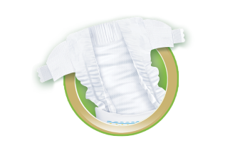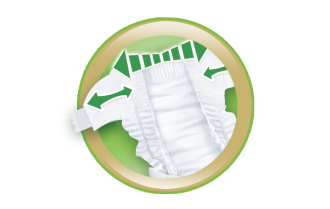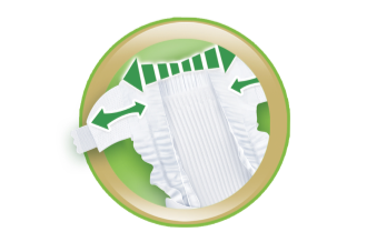 ขอบเอวและหูยางยืดของผ้าอ้อมสามารถยืดได้มากถึง 2 เท่าของขนาดเดิม