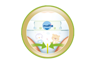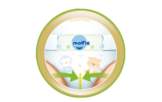 ชั้นระบายอากาศพิเศษนี้เป็นเทคโนโลยีเฉพาะของโมฟิกที่นำเส้นใยไผ่ธรรมชาติซึ่งซึมซับน้ำได้ดีมาเป็นส่วนประกอบ การดูดซึมจะเร็วขึ้นและง่ายขึ้นมาก จึงช่วยให้ของเหลวกระจายตัวอย่างสม่ำเสมอแทนที่จะสะสมที่จุดเดียว ดังนั้นลูกน้อยของคุณจึงรู้สึกแห้งและสบาย